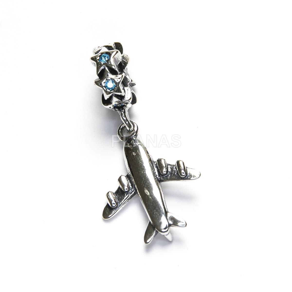 Dije para pulsera realizado en plata 925 y circonitas en color azul.