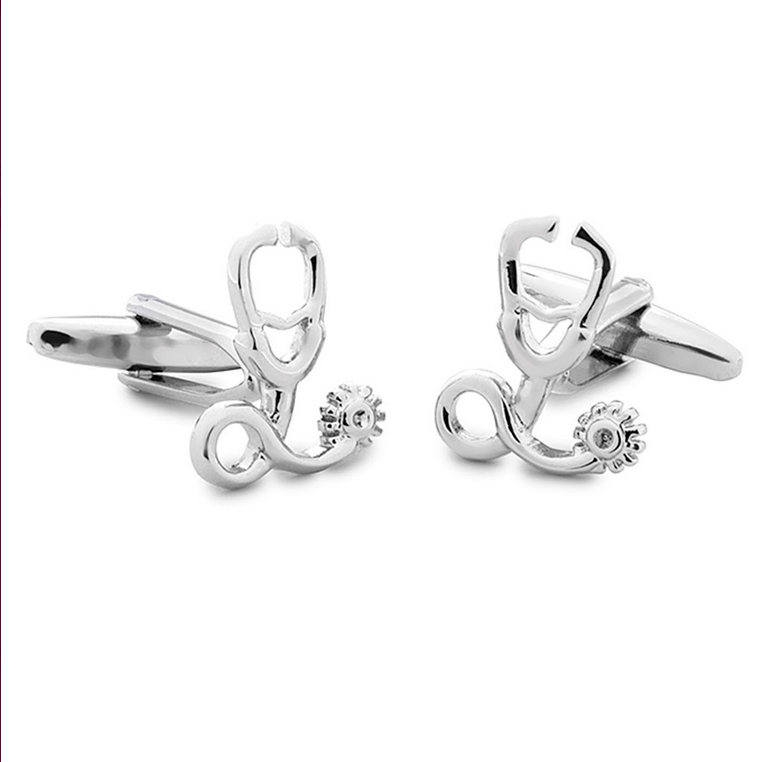 Luce tu vocación con estilo gracias a estos gemelos con forma de fonendoscopio. Diseñados en latón de primera calidad con baño de rodio, su acabado plateado brillante resalta cada detalle del instrumento médico por excelencia.