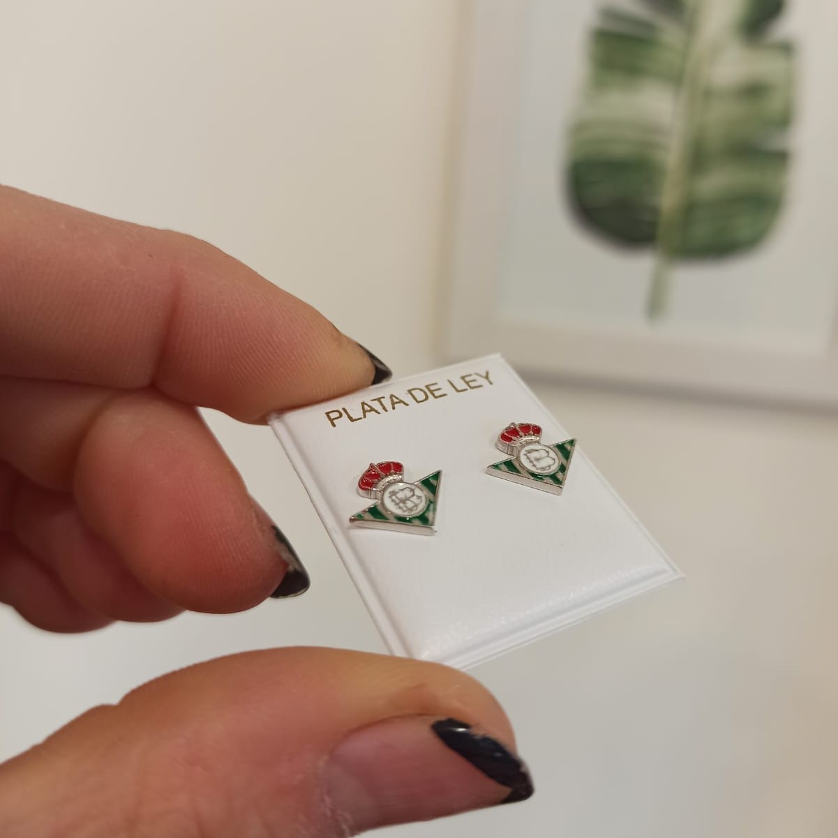 De diseño compacto y cómodo, cuentan con cierre de presión, lo que garantiza una sujeción segura para el día a día. Su acabado esmaltado en verde, blanco y rojo los convierte en una joya llena de carácter y orgullo bético.